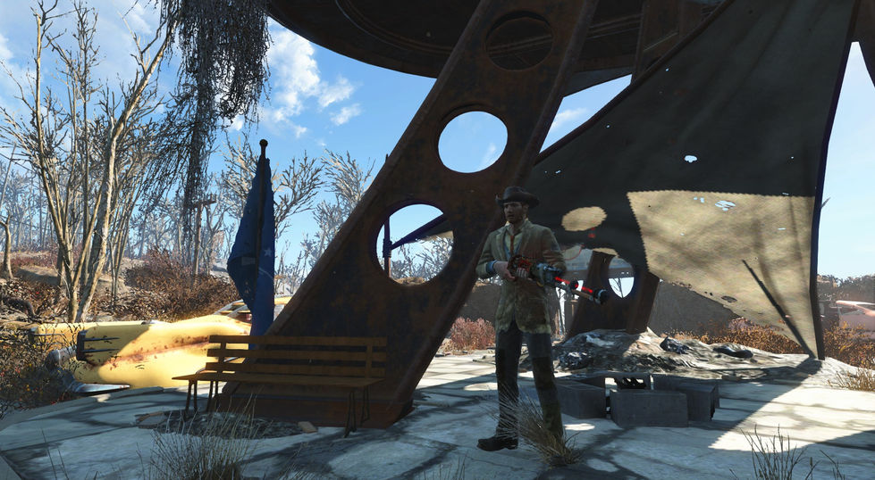 "Crossed Swords" is a standalone level for Fallout 4 that takes place in a fully custom world-space, Capstan Island. The quest takes the player through a bloody conflict between two factions, with the player piecing together the truth of the conflict before they must choose a side and finish things. The quest also contains a side quest in which the player helps a prisoner find out what happened to his wife amidst the bloodshed.